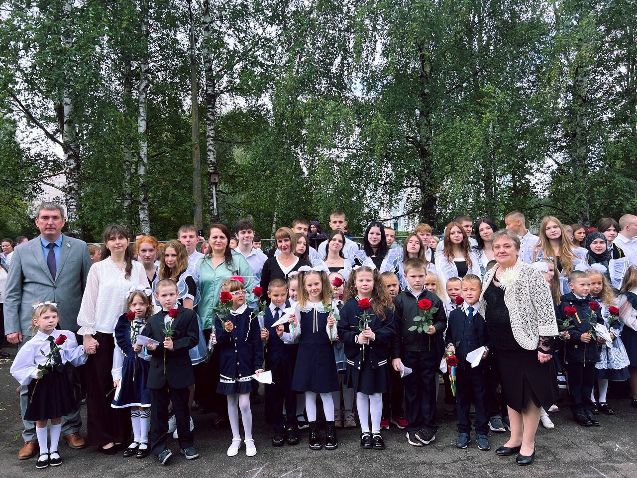 ? Праздник начался с торжественного построения на школьной площадке. Под аплодисменты зрителей на линейку вошли самые юные участники — наши первоклассники. Для них это первый в жизни звонок и первые шаги в удивительный мир знаний. А сопровождали их будущие выпускники — девятиклассники, ставшие для малышей надёжными старшими друзьями.